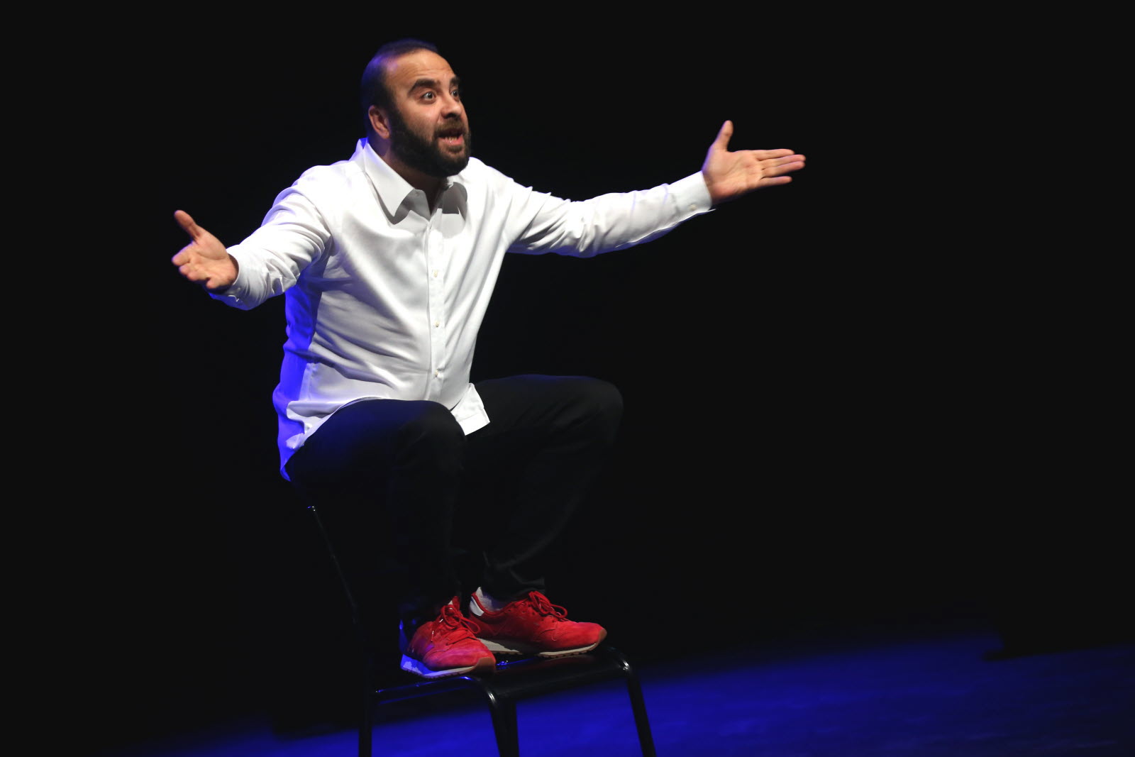 Raconter sa vie dans un livre, ce n'était déjà pas chose aisée. Se mettre nu, plonger dans mon intimité profonde alors que tout autour de moi n'était que pudeur, que choses qu'on ne dit pas. Le succès du livre auprès des jeunes m'a donné envie de franchir le pas, d'oser le Seul en scène. D'oser parler de moi, de nous, de mes parents, de leur Maroc, de ma Belgique, de mon islam judéo-chrétien, de cette vie qui m'en a fait voir de toutes les couleurs et qui finalement ressemble étrangement à celle de tou·te·s. C'est donc un voyage que je vous invite à vivre avec moi, un voyage aux tréfonds de ma vie. C'est un spectacle créé en besoin, comme un besoin vital de raconter, raconter pour ne pas s'oublier, raconter pour se ressembler, raconter pour se rassembler.